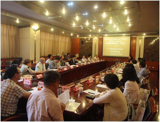 9月9日, Journal of Traditional Chinese Medical Sciences ,即《中醫科學雜志》(英文)第一屆編委會第三次會議召開。我校校長、主編徐安龍,常務副主編劉建平,來自國內外的編委:香港勞力行、德國Dieter Melchart、俄羅斯PAVLOVA Ludmila和ZILOV Wadim G.,以及外籍編輯Nissi Wang等30余人參會。會議由劉建平副主編主持。