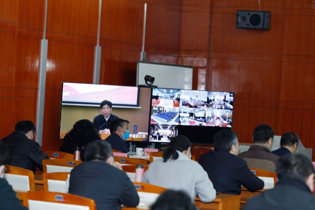 徐安龍校長結合《政府工作報告》的多組數據,和大家共同回顧了我國在2020年取得的不平凡的成就。過去的一年我國疫情防控取得重大戰略成果、脫貧攻堅戰取得全面勝利、在全球主要經濟體中唯一實現經濟正增長,充分彰顯了中國特色社會主義制度優勢。他強調,今年是全面建設社會主義現代化國家新征程的開局之年,學校作為教育部直屬的中醫藥大學,要堅定不移走高質量發展之路,創新驅動發展,不斷提高科技創新能力,推進內涵式發展,全面助力國家健康中國、教育強國建設。