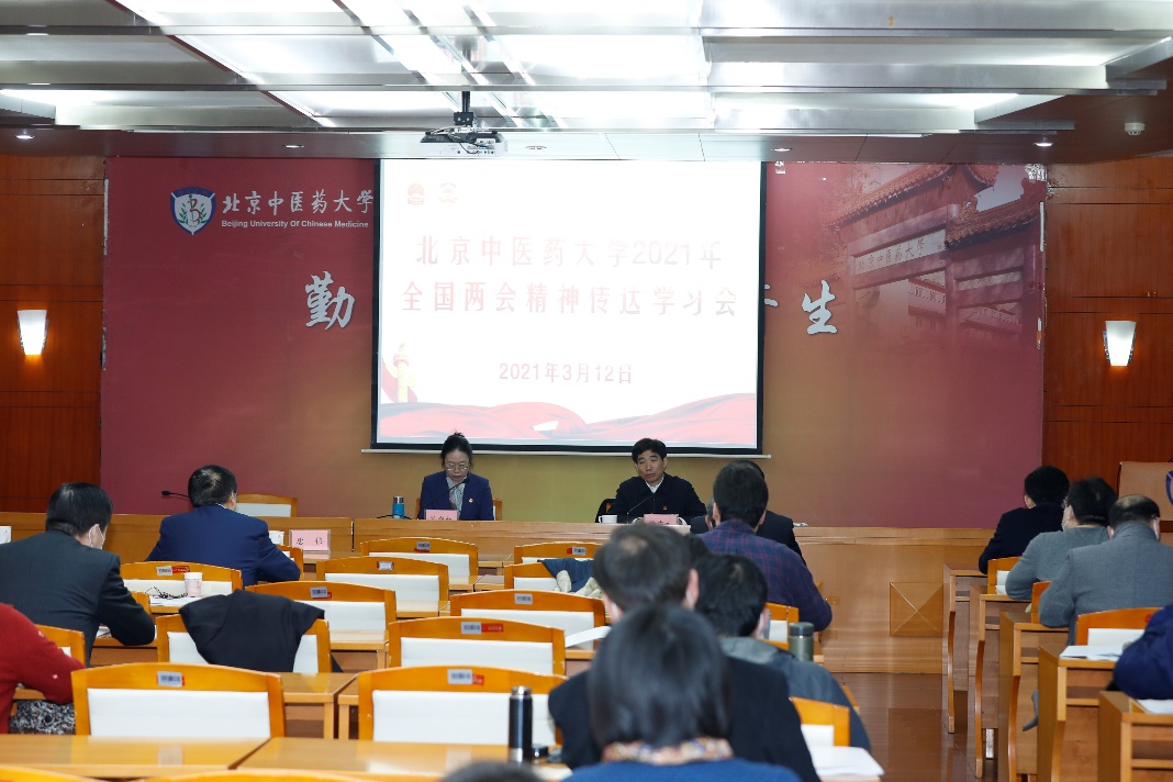 徐安龍校長重點傳達了習近平總書記在看望參加政協會議的醫藥衛生界教育界委員時的重要講話精神。他指出,總書記的重要講話高屋建瓴、全面深刻,充分說明了國家對醫務工作者和教育工作者的高度重視和肯定,為指導醫藥衛生事業與教育事業發展提供了重要遵循和科學指南。他強調,要深入學習貫徹總書記重要講話精神,全面貫徹黨的教育方針,堅持社會主義辦學方向,堅持扎根中國大地辦大學,培養德智體美勞全面發展的社會主義建設者和接班人。他要求學校及各附屬醫院要按照總書記的講話精神,對標對表,聚焦影響人民健康的重大疾病和主要問題,繼續為人民提供全方位全周期健康服務。要求廣大師生和干部職工要牢記總書記的信任與囑托,在醫藥衛生和教育領域持續發力,敢于擔當、勇于作為,發揮我校中醫藥特色優勢,肩負起推進中醫藥事業傳承精華、守正創新的責任,科學地講好中醫藥故事,努力構建具有中國特色、中醫藥特色的學科體系,把中醫藥這一中國古代科學的瑰寶,更好地展示給世界、展示給人民,為健康中國和構建人類命運共同體貢獻北中醫智慧和力量。