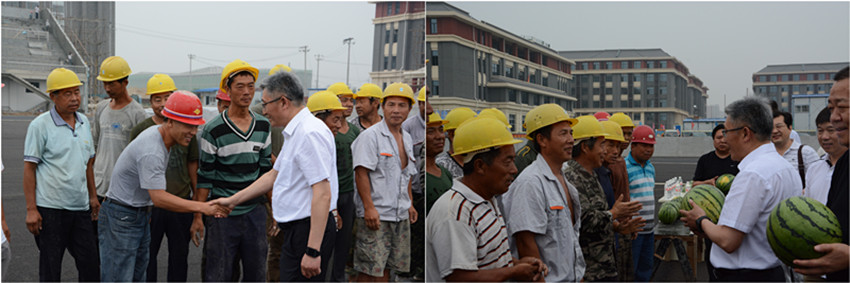 吳建偉書記一行來到體育場工地現(xiàn)場,看望并慰問工程建設(shè)者們。他指示,工程管理方要關(guān)心農(nóng)民工的工作和生活情況,尤其在炎熱的夏季要采取切實(shí)有效的防暑降溫措施,注重施工安全管理的同時(shí)提供充分的后勤保障。吳書記還要求各有關(guān)部門要做好新校區(qū)入住前協(xié)調(diào)準(zhǔn)備工作,細(xì)化管理職能劃分,做到各部門之間無縫對接,有序推進(jìn)各項(xiàng)工作,為廣大師生入住提供舒心、滿意、優(yōu)質(zhì)的服務(wù)。
