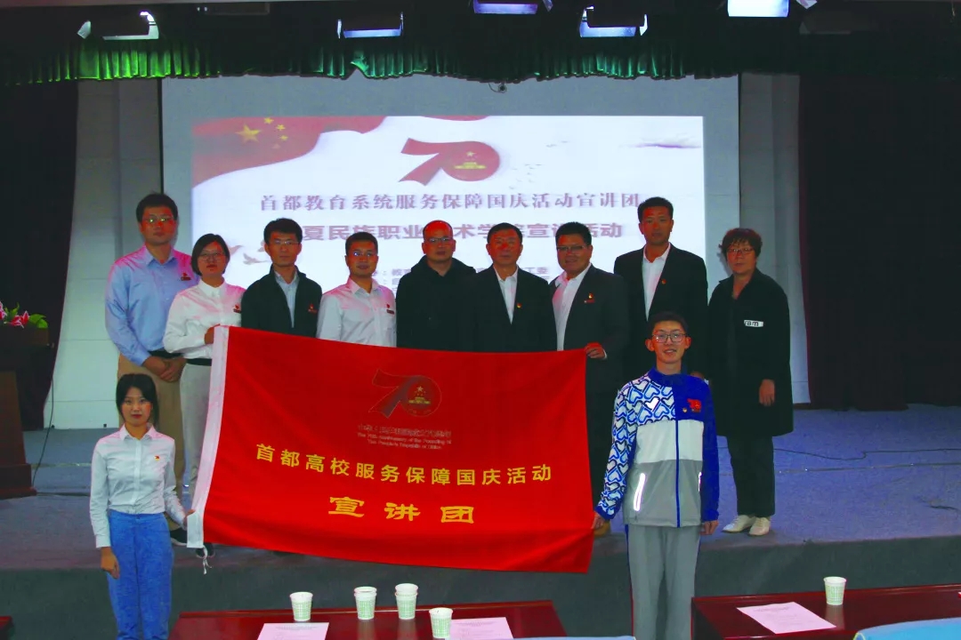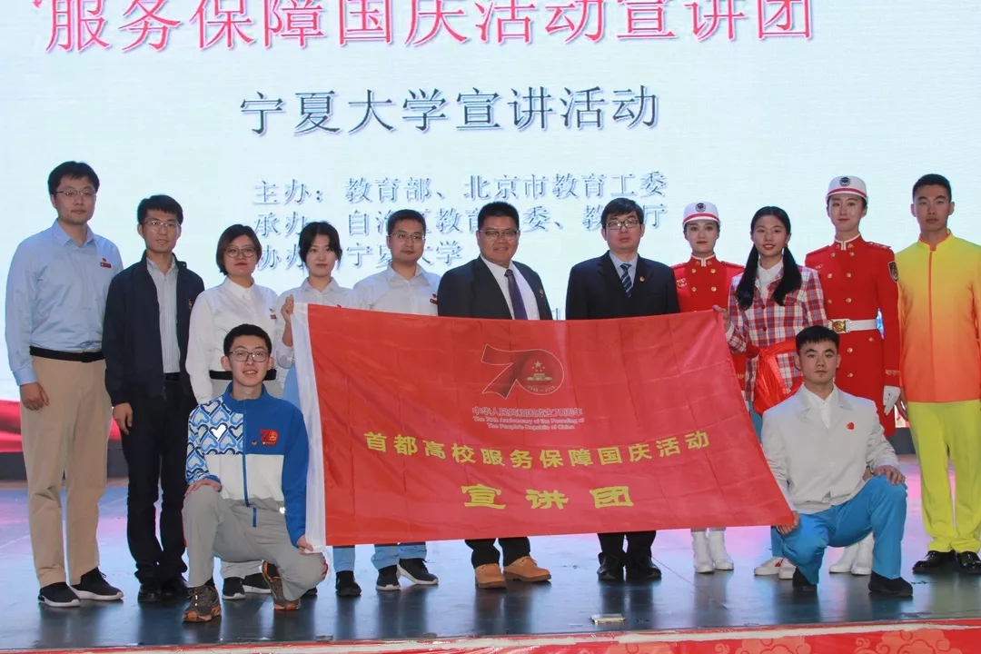 在新中國(guó)成立70周年慶祝活動(dòng)中,北京中醫(yī)藥大學(xué)660名師生與首都20余萬(wàn)軍民一起,參與群眾游行方陣、承擔(dān)志愿服務(wù)和保障工作,圓滿完成了為祖國(guó)母親慶生的光榮任務(wù)。按照教育部和北京市關(guān)于組建“首都高校服務(wù)保障國(guó)慶活動(dòng)宣講團(tuán)”要求,北京中醫(yī)藥大學(xué)和北京聯(lián)合大學(xué)組成宣講團(tuán)對(duì)接寧夏回族自治區(qū)開(kāi)展主題宣講。學(xué)校黨委高度重視,在接到任務(wù)后及時(shí)成立工作專班,由校領(lǐng)導(dǎo)任組長(zhǎng),統(tǒng)籌組建了由教授、博士生導(dǎo)師、專職輔導(dǎo)員、思想政治理論課教師和學(xué)生代表組成的宣講團(tuán),宣講團(tuán)師生在校內(nèi)外持續(xù)開(kāi)展宣講活動(dòng)。