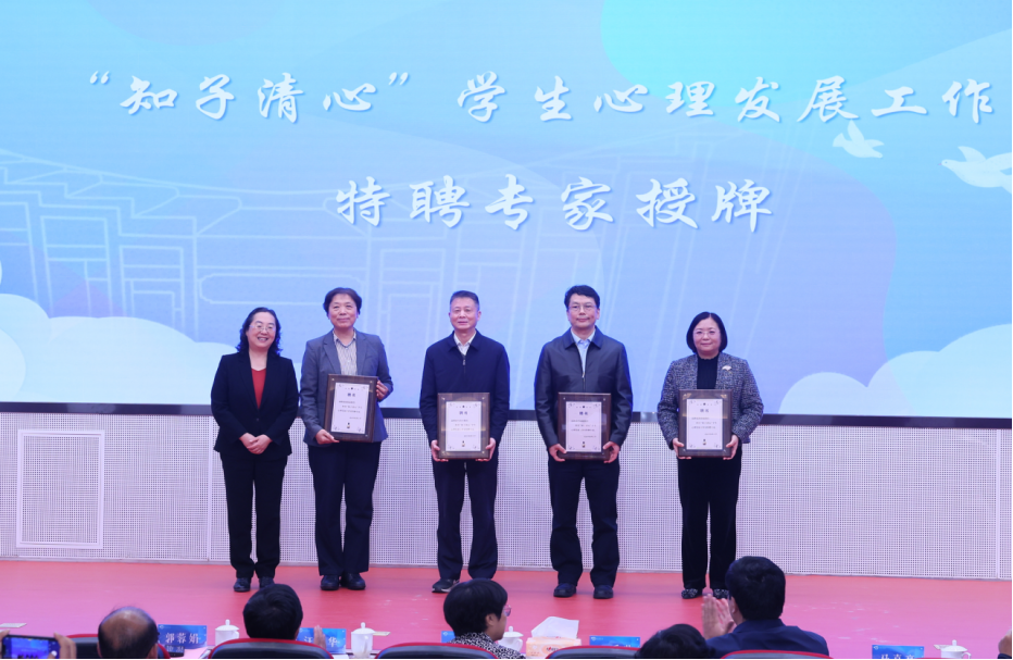 校黨委書記王瑤琪出席論壇,并為知子清心學生心理發展工作室特聘專家授牌。