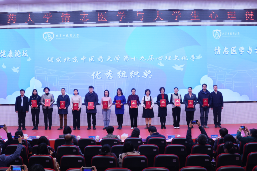 隨后,舉行知子清心學生心理發展工作室特聘專家授牌、骨干成員授證書儀式,并頒發北京中醫藥大學第十九屆心理文化季優秀組織獎。王瑤琪書記、汪慶華副書記及與會領導對我校為學生心理健康和危機干預付出心血與汗水的心理健康教育工作隊伍頒發了證書、進行了表彰。