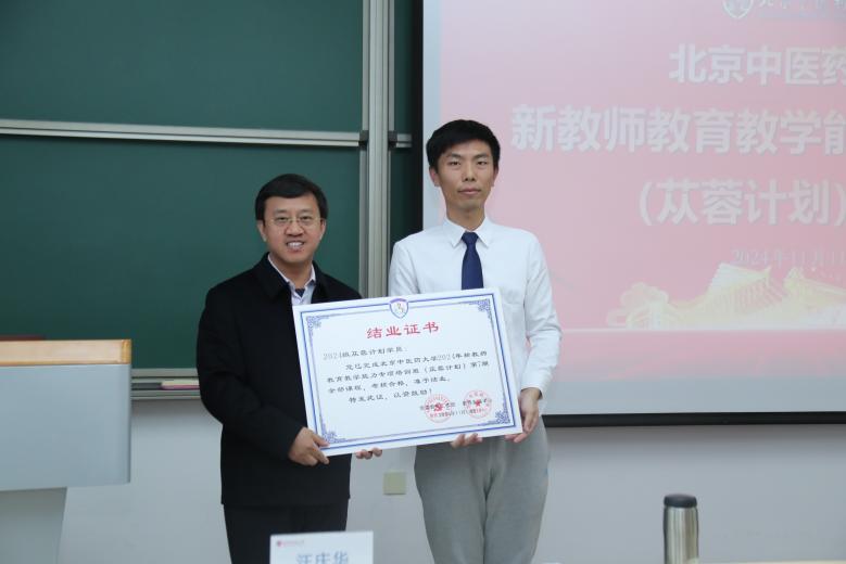 黨委副書記汪慶華在結業儀式上進行總結講話。他指出,學校高度重視教師發展和教育教學能力培訓,黨委教師工作部、教師發展中心和其他相關部門做了大量工作,全體參訓學員認真參與,確保了培訓順利開展,并取得了良好效果,體現了“投入、專注、用心”。他強調,北中醫廣大青年教師要按照習近平總書記和黨中央的部署要求,進一步增強立德樹人的責任感使命感,勇擔建設教育強國、科技強國、人才強國的歷史重任;要爭做“四有”好老師,做培養未來中醫藥卓越領軍人才的大先生;要保持熱愛,對教育事業的熱愛,對千差萬別的每一個學生無差別的“大愛”,做萬千學生健康成長成才的引路人。他希望每一位青年教師都要做奮斗者、拼搏者,堅定理想信念,樹立遠大目標,擁有仁愛之心,勇攀科學高峰,弘揚教育家精神,落實立德樹人根本任務,為實現健康中國和中國式現代化貢獻自己的智慧和力量。