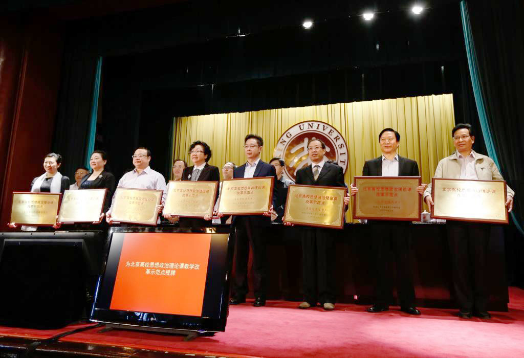 會議為北京高校思想政治理論課教學改革示范點授牌。我校在校領(lǐng)導的高度重視和指導下,由谷曉紅副校長作為負責人牽頭申報的“社會主義核心價值觀與‘大醫(yī)精誠’教育教學改革示范點”在眾多高校中脫穎而出,成功入選首批改革示范點,馬克思主義學院王梅紅院長代表我校接受了北京市委教育工委的授牌。此次經(jīng)專家評審和工委會審議通過,共有13所高校獲評首批改革示范點,2所高校為改革示范點培育項目。北京高校思想政治理論課教學改革示范點是北京市委教育工委貫徹落實中央和市委關(guān)于加強思想政治理論課建設(shè)的有關(guān)要求,深化課程綜合改革,所凝練和形成的一批有特色、效果好、可推廣的高水平成果。