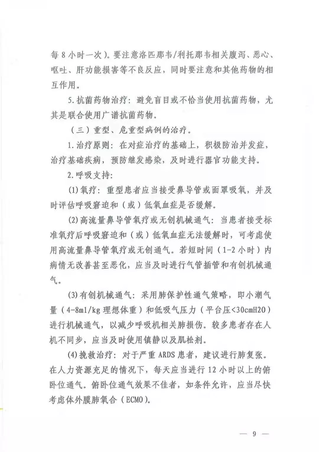 抗病毒治療:增加“目前沒有確認(rèn)有效的抗病毒治療方法。”?在可試用α-干擾素霧化吸入、洛匹那韋/利托那韋基礎(chǔ)上,增加“或可加用利巴韋林”。同時,要注意洛匹那韋/利托那韋相關(guān)腹瀉、惡心、嘔吐、肝功能損害等不良反應(yīng),以及和其它藥物的相互作用。