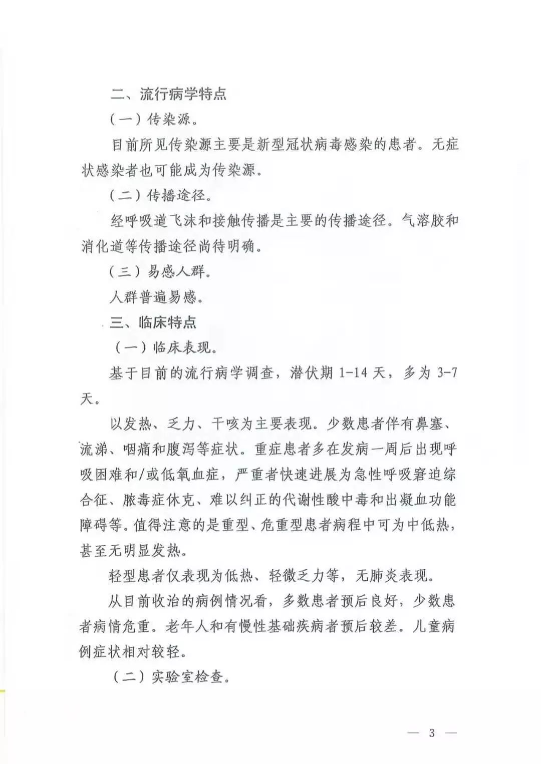 實驗室檢查增加“部分患者可出現(xiàn)肝酶、LDH、肌酶和肌紅蛋白增高;部分危重者可見肌鈣蛋白增高。”和“鼻咽拭子、痰、下呼吸道分泌物、血液、糞便等標(biāo)本中可檢測出新型冠狀病毒核酸。”