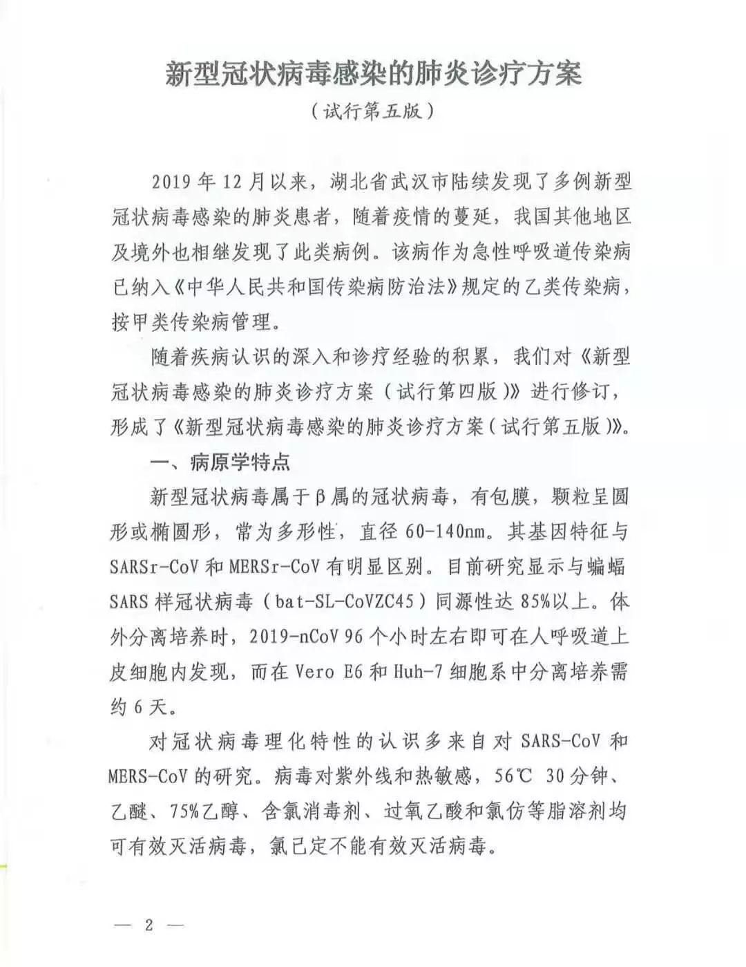 新型冠狀病毒感染的肺炎診療方案(試行第五版)解讀