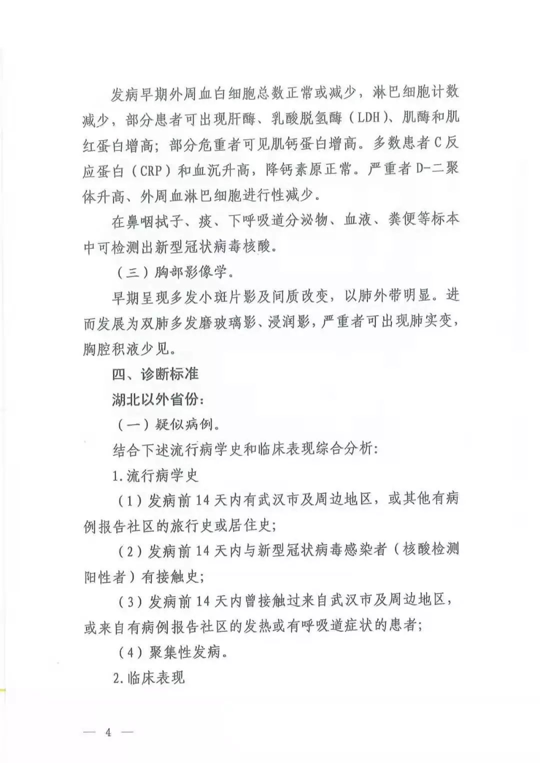 第四,病例診斷根據(jù)湖北省和湖北省以外其他省份區(qū)別對待。