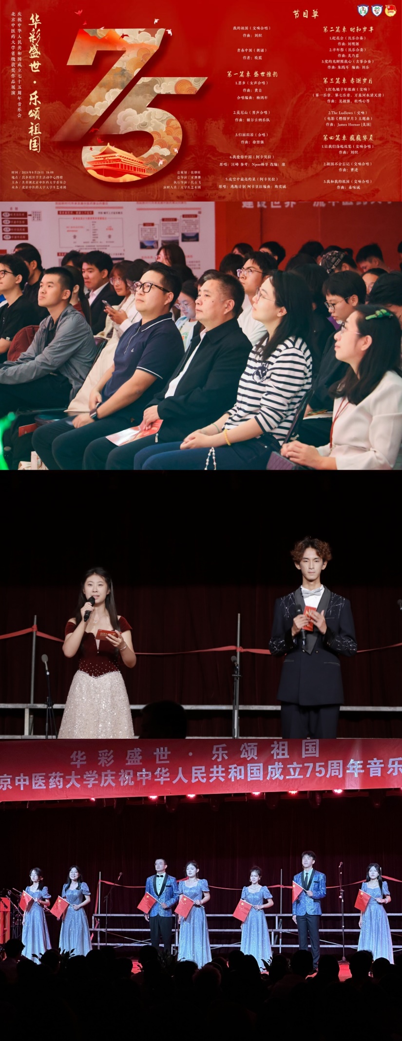 9月29日,由校團委主辦,大學生藝術團承辦的“華彩盛世·樂頌祖國”——北京中醫(yī)大學慶祝中華人民共和國成立75周年音樂會在良鄉(xiāng)校區(qū)學生活動中心四層舉辦。校黨委副書記張繼旺、校團委書記宋珊珊、校團委副書記代立飛參加,與400余名學生齊聚一堂觀看演出。