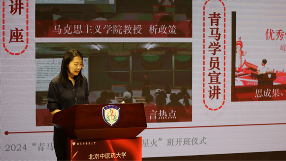 宋珊珊書記介紹了我校青馬工程開設基本情況和體系設置,依托中醫藥文化,以“理論學習+實踐鍛煉”的培養模式助力學員成為一名真正合格的青年馬克思主義者。