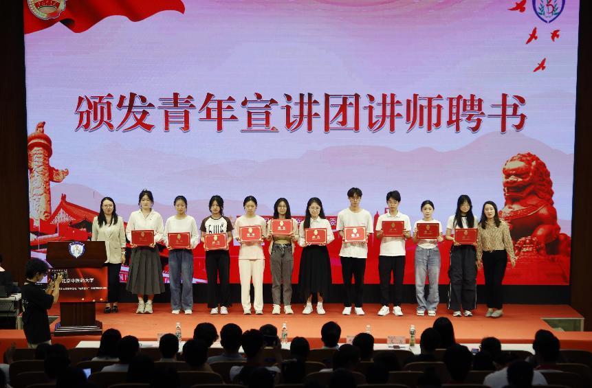 北京中醫藥大學青年宣講團在校黨委指導下成立,由馬克思主義學院專任教師及各學院團委負責人作為導師,結合身邊人、身邊事,以通俗易懂的“青言青語”和同學喜聞樂見的形式傳遞黨的“好聲音”。黨校辦公室主任張昕欣、學工部副部長艾華為我校青年宣講團成員代表和宣講團導師代表頒發聘書。