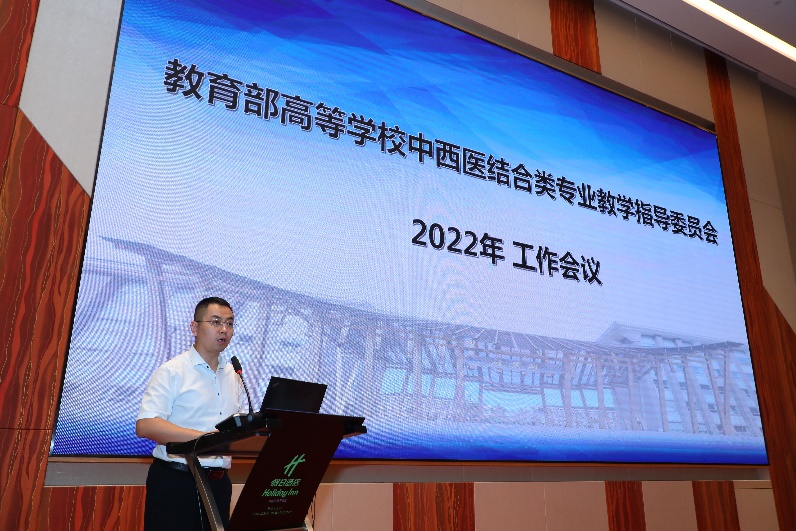 當天下午,教育部中西醫結合教指委工作會議召開。會上,秘書處首先就中西醫結合教指委2022年開展的各項重點工作進行了總結,并從課程思政建設、一流專業建設、專業認證、教材建設、師資隊伍建設、實踐教學、教育科學研究等方面匯報了2023年工作計劃。