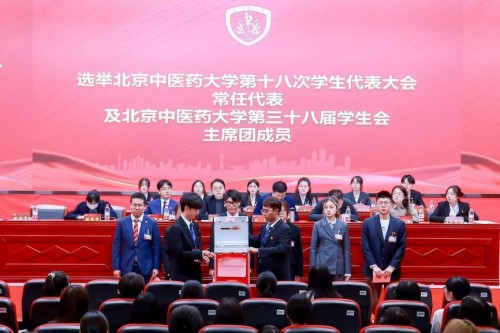 閉幕式上,大會總監票人報告選舉計票結果,宣布北京中醫藥大學第十八次學生代表大會常任代表當選名單及新一屆學生會和研究生會主席團成員當選名單,并審議通過《關于<北京中醫藥大學第三十七屆學生會工作報告>的決議》和《關于<北京中醫藥大學第三十屆研究生會工作報告>的決議》。