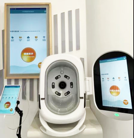 今天,官微就帶領大家去體驗中醫藥體驗館里一臺新奇的智能中醫機器人——中醫四診體質監測儀。
