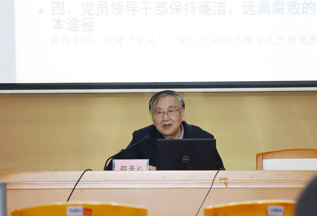 啟動(dòng)會(huì)后,邵景均研究員以“學(xué)習(xí)黨百年反腐敗歷史經(jīng)驗(yàn),走好中國(guó)特色反腐倡廉道路”為主題作報(bào)告。此次報(bào)告是2021年學(xué)校黨風(fēng)廉政宣傳教育月“清風(fēng)講堂”首場(chǎng)講座。在講座中,邵景均研究員介紹了中國(guó)共產(chǎn)黨百年反腐敗斗爭(zhēng)的主要?dú)v程和基本經(jīng)驗(yàn),解讀了中國(guó)特色反腐倡廉道路的形成發(fā)展和主要特點(diǎn),詮釋了中央部署一體推進(jìn)“不敢腐、不能腐、不想腐”的有關(guān)要求,闡釋了黨員干部保持廉潔遠(yuǎn)離腐敗的基本途徑。