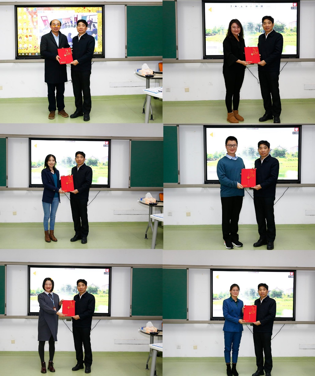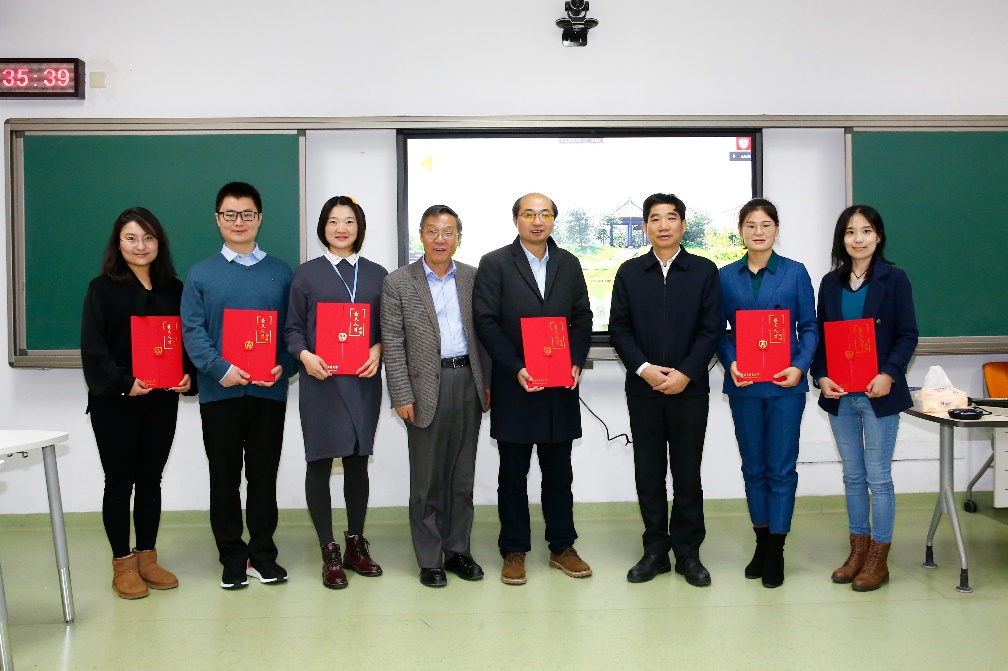 徐安龍校長為壺天學者入選者劉建平教授、陳建新研究員,壺天青苗學者B類入選者:郭津丞特聘副教授、陳云特聘副教授、曹瑾特聘副教授、徐文靜特聘副研究員頒發了“壺天人才計劃”聘書。