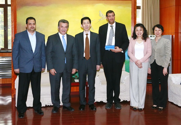 4月14日下午,埃及本哈大學校長阿里·夏姆斯在埃及駐中國大使館文化參贊侯賽因·伊卜拉欣先生陪同下訪問我校。我校副校長王偉接待了來訪客人。