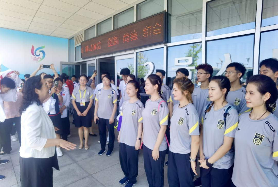 王瑤琪書記在開幕式結束后看望慰問我校代表團成員,并為運動健兒作激情動員。