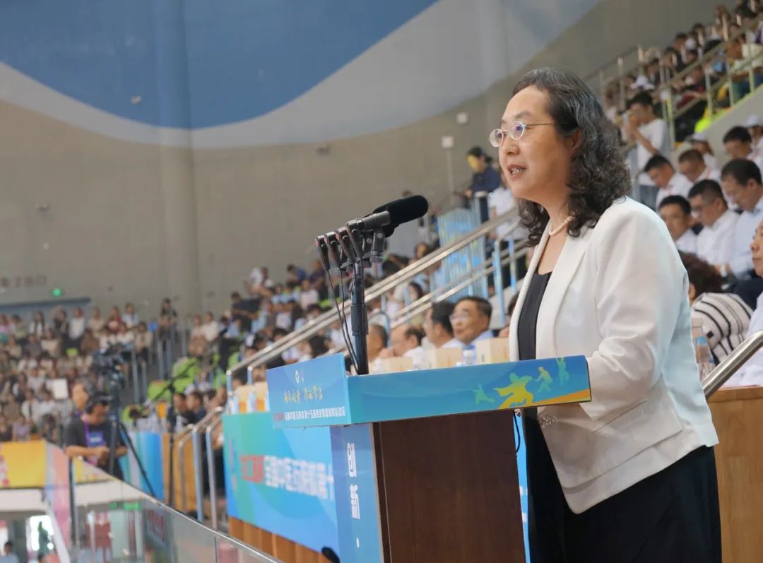 王瑤琪書記在開幕式上代表全體參賽院校領導致辭。她表示,本屆傳運會的舉辦將為廣大青年學子點燃運動激情、播撒體育火種、傳承文化精華,促進全民健身活動的廣泛開展,同時帶動體育健康產業和中醫藥事業的高質量發展。她希望各參賽隊伍要珍惜此次參賽機會,發揚頑強拼搏、團結互助的精神,在比賽中賽出風格、賽出水平、賽出友誼。希望各兄弟院校加強溝通,促進合作交流,攜手共創中醫藥事業更加美好的明天。