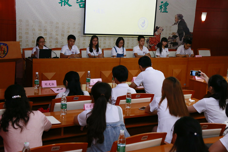 閉營儀式上,營員代表匯報展示了各自的學習成果。南京中醫藥大學的學生代表首先發言,他們結合所選小學期課程分享了心得體會,表示通過本次夏令營的開辦增強了學習中醫的信心,也學到了包容的精神和開放的心態;成都中醫藥大學的學生代表作了題為“溫暖、分享、成長”的匯報,就徐安龍校長談到的學習中醫如何堅守初心交流了心得體會;廣州中醫藥大學參加夏令營的同學們表示對信息化的新校區印象深刻,通過課程體驗、醫院參觀、博物館參觀等活動增加了學習中醫的興趣;上海中醫藥大學的同學們以“岐黃之約,如期而至”為主題,表示收獲良多,不但以PPT形式匯報了本校中醫學長學制學生的培養模式,還用心將夏令營的所見所感制作成了小視頻;我校學生代表作為東道主再次歡迎了各校學子前來交流,以“新華山論劍”和“不忘初心”為主題,用生動幽默的方式,與在場師生分享了參加本次夏令營的收獲與成長。