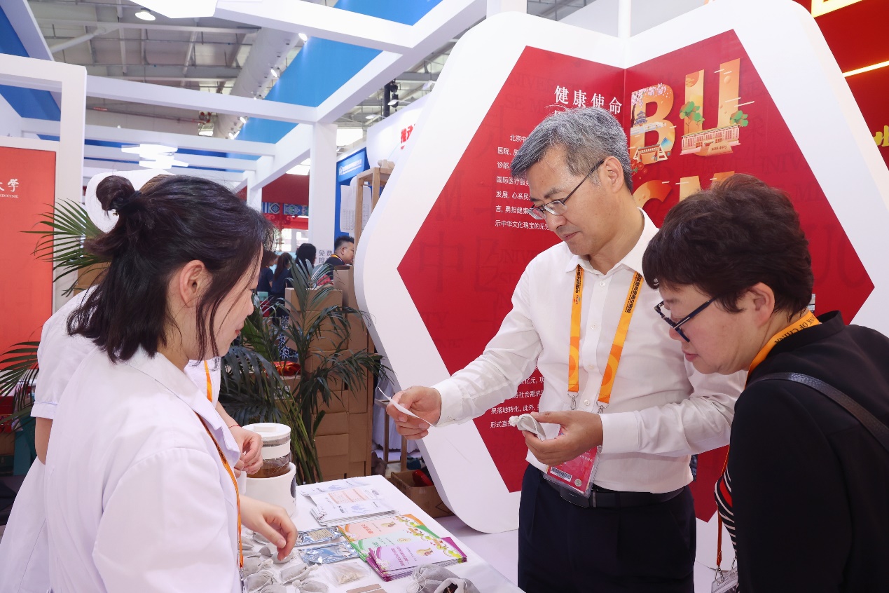 健康衛(wèi)生服務(wù)專題作為本屆服貿(mào)會九大專題之一,是健康行業(yè)示范發(fā)展的重要窗口。本次中醫(yī)藥展區(qū)以“推動實(shí)現(xiàn)中醫(yī)現(xiàn)代化,促進(jìn)人類共同健康”為主題,集中展示了中醫(yī)藥健康領(lǐng)域高質(zhì)量發(fā)展成果。我校作為其中的重要版塊參展。