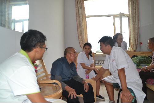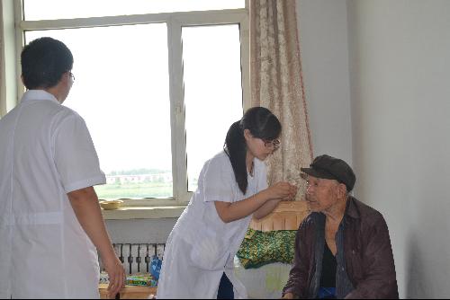 25日下午,研究生們為新城敬老院老人們進行保健和健康咨詢活動。新城敬老院為當地敬老愛老示范基地,在敬老院里住著10位八十歲以上的老人和20多位五保戶老人。志愿者同學為老人們進行了扎針、艾灸、測量血壓、按摩和耳穴貼敷等,并和老人們親切交談。老人們十分感謝敬老院的工作人員對他們無微不至的照顧,許多五保戶老人都把那里的工作人員當作自己的兒女一樣看待。敬老院工作人員的善舉讓志愿者同學深受感動,也感受到本次活動的重要意義。