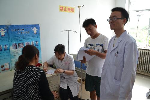 25日上午,社會實踐團成員在天鎮縣同仁醫院進行義診和健康志愿咨詢活動。活動受到了當地居民的熱烈歡迎,共有近200人次前來就診和咨詢。天鎮縣志愿者也到場提供幫助。在活動最后,當地培養的盲人推拿師與老師和同學們進行了推拿技法的交流。王劍輝副主席表示,到貧困地區進行志愿活動,不但要滿足當地群眾的醫療需要,也要通過教學、交流的方式提高當地的醫療水平,引導他們走向小康。