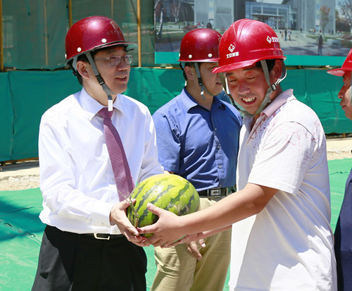儀式結束后,徐安龍校長、鄔國強副校長等領導視察了建設工地并看望、慰問該項目工程建設者,勉勵他們發揚連續作戰的精神,克服時間緊、任務重等困難因素,確保高質量、高標準完成工程建設任務。
