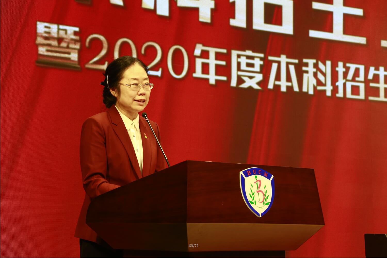 谷曉紅書記代表學校向在本科招生工作一線上的同志和做出重要貢獻的廣大師生致以崇高的敬意和真摯的感謝,對我校過去一年的招生工作進行了總結,指出了存在的不足。谷書記結合近期召開的全國中醫藥大會,中醫學類、中西醫結合一流專業交流評審大會精神,對即將開展的2020年招生工作進行了重要的指示和部署:一是招生工作不只是招生與就業處的工作,更是每一位北中醫人都應該承擔的責任,招生工作人人有責,人人要盡責;二是要進一步重視招生工作,讓參加招生工作的教職工有尊嚴,有榮譽感和獲得感;三是在人才培養中,育人和育才是關鍵,要認真學習領會全國中醫藥大會精神,立德樹人,培養德智體美勞全面發展的社會主義接班人;四要居安思危,居安思變,要加強內涵建設,打造一流專業。她鼓勵學校資深教授進入專業招生宣傳工作中,人人有責,人人盡責,把學校生源招生工作做得更好,為生源質量,為學校人才培養攀上新的高峰作出新的貢獻。