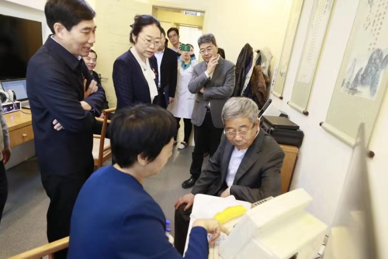教育部黨組書記、部長陳寶生來校調研時觀看我校智慧中醫裝備展示