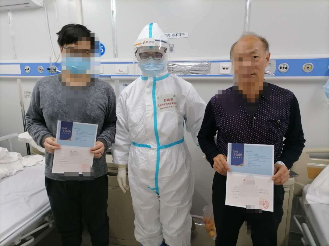 為了讓患者保持心情舒暢,積極接受治療,彭曉洪還用情致調節的方法給患者傳遞樂觀的心情。“其實我們外面的氣氛挺緊張的,但進到病區里面,我們盡量營造輕松的氛圍,說一些讓大家都開心的話,盡量不要給他們增加心理負擔”,彭曉洪說。
