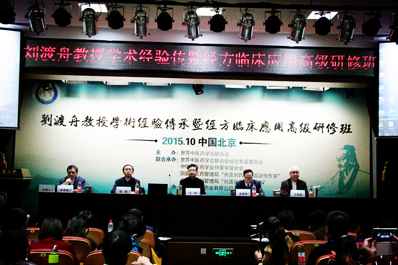 10月23日至25日,由世界中醫藥學會聯合會主辦,世界中醫藥學會聯合會經方專業委員會、中華中醫藥學會仲景學說分會、國家中醫藥管理局“燕京劉氏傷寒流派傳承工作室”、北京市中醫管理局“劉渡舟名家研究室”聯合承辦的“劉渡舟教授學術經驗傳承暨經方臨床應用高級研修班”在我校舉行,來自全國各地、港澳臺地區以及我校師生300余人齊聚一堂、學習交流。國醫大師、我校終身教授王琦,我校黨委副書記靳琦,世界中醫藥學會聯合會副秘書長姜再增,我校原副校長王慶國,我校遠程教育學院院長李宇航出席本次研修班。開幕式由李宇航教授主持。