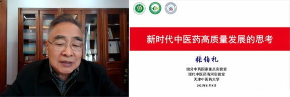 本次大會(huì)主席張伯禮院士在主旨報(bào)告環(huán)節(jié)作了題為“Thoughts on the high-quality development of TCM in the new era(《新時(shí)代中醫(yī)藥高質(zhì)量發(fā)展的思考》)的報(bào)告,報(bào)告內(nèi)容高屋建瓴,介紹了中醫(yī)藥高質(zhì)量發(fā)展的新時(shí)代背景、現(xiàn)代化和產(chǎn)業(yè)發(fā)展現(xiàn)狀,對(duì)中醫(yī)藥面臨的瓶頸問(wèn)題給予了分析與指導(dǎo)。