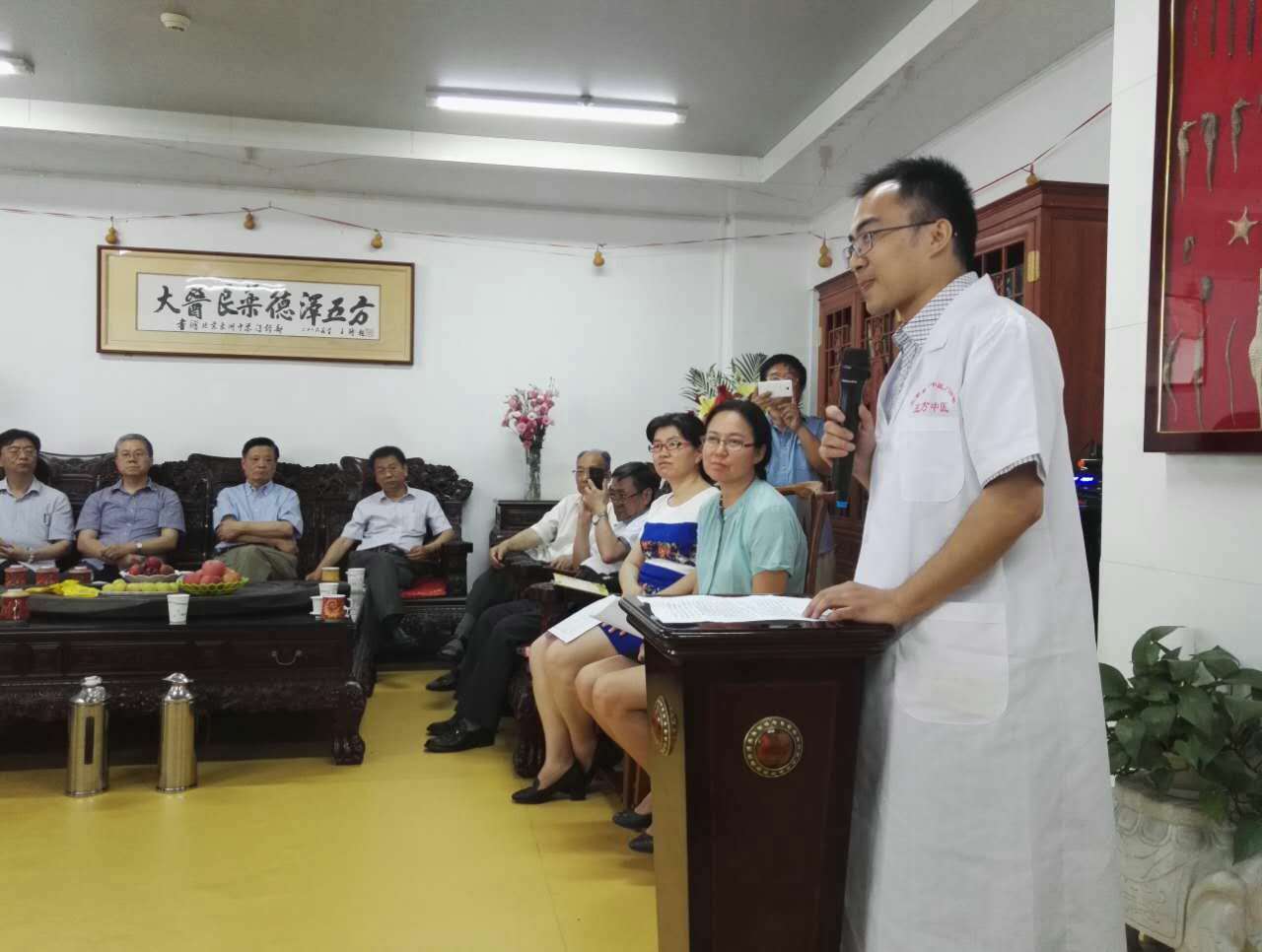 學生代表左加成講述了一名中醫學子勤奮求學的過程和對未來道路的追尋與思考,他說,無數個夜晚,為了研究一個病例去挑燈夜讀;發現一本好書而欣喜若狂;治愈一個病人而激動萬分……對于那些追求在中醫夢想道路上的大學生,這些都不算什么,真正讓我苦惱的是缺乏一個平臺,一個真正用中醫理論去治病的平臺?!罢斘覀円换I莫展、艱難前行的時候,大學創新創業中心與基礎醫學院為我們提供了良好的創業平臺,鼓勵我們創業,支持我們創新,只要能夠發展中醫事業,都得到了極大的肯定”,加成表示,創立五方中醫不僅僅是單純的發揚中醫事業更是想為學弟學妹樹立前行的榜樣,共同推動祖國醫學、弘揚愛國情懷。