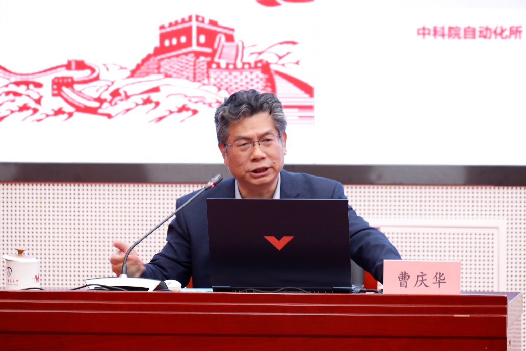會議邀請北京航空航天大學(xué)高等理工學(xué)院院長、國家卓越工程師學(xué)院和未來空天技術(shù)學(xué)院常務(wù)副院長曹慶華教授,以《人工智能技術(shù)對課程教學(xué)變革的探索與展望》為主題作輔導(dǎo)報(bào)告。曹慶華教授站在人工智能數(shù)字化教育全局的高度,結(jié)合自身實(shí)踐經(jīng)驗(yàn),從國際應(yīng)用案例、北航探索實(shí)踐、未來展望思考三個(gè)方面作了一場精彩、實(shí)用的專題報(bào)告。他以北航的智能答疑系統(tǒng)研發(fā)為例,強(qiáng)調(diào)隨著人工智能技術(shù)的爆炸式發(fā)展,高校數(shù)字化轉(zhuǎn)型進(jìn)入新的階段,要重構(gòu)高校人才培養(yǎng)體系,重塑人才培養(yǎng)目標(biāo)和培養(yǎng)方案,實(shí)現(xiàn)以人為本。面對大數(shù)據(jù)、人工智能、云計(jì)算、虛擬現(xiàn)實(shí)等驅(qū)動教育生態(tài)變革,未來教育的組織管理、治理體系和資源配置與監(jiān)測評估都要適應(yīng)新變化。高校要主動應(yīng)對人工智能對教育教學(xué)的深度變革,高度重視高校教育數(shù)字化轉(zhuǎn)型,積極探索人工智能賦能教育教學(xué)變革,著力提升教師的數(shù)字素養(yǎng),全員全過程全方位建設(shè)好數(shù)字教育必修課。