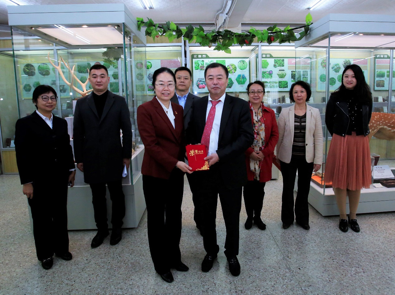 日前,山東威高集團(tuán)醫(yī)用高分子制品股份有限公司向我校中醫(yī)藥博物館捐贈(zèng)了珍貴的賽加羚羊和降真香標(biāo)本。今天上午,在中醫(yī)藥博物館三層展廳舉行了捐贈(zèng)儀式,我校黨委書記谷曉紅,威高集團(tuán)總裁王毅和相關(guān)負(fù)責(zé)人,我校黨委辦公室、校長辦公室,北京中醫(yī)藥大學(xué)教育發(fā)展基金會(huì)、國際交流與合作處、國家中醫(yī)國際傳播中心、中醫(yī)藥博物館等部門相關(guān)人員和師生代表一起參加了捐贈(zèng)儀式。儀式由中醫(yī)藥博物館館長盧穎主持。