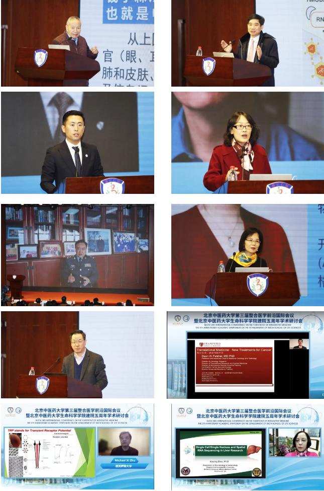 12月12日,北京中醫(yī)藥大學(xué)第三屆整合醫(yī)學(xué)前沿國際會議暨北京中醫(yī)藥大學(xué)生命科學(xué)學(xué)院建院五周年學(xué)術(shù)研討會在北京召開,本次大會以“守正創(chuàng)新、融合發(fā)展”為主題,由北京中醫(yī)藥大學(xué)、教育部高等學(xué)校中西醫(yī)結(jié)合類專業(yè)教學(xué)指導(dǎo)委員會主辦,北京中醫(yī)藥大學(xué)生命科學(xué)學(xué)院、智慧中醫(yī)裝備教育部工程研究中心、中醫(yī)藥防治疑難病國際合作研究基地、中醫(yī)藥防治重大慢病(腫瘤)學(xué)科創(chuàng)新引智基地承辦,北京中醫(yī)藥大學(xué)國際與港澳臺工作部、研究生院、科技處協(xié)辦。我校校長徐安龍擔(dān)任大會主席并作主題報告。中國工程院樊代明院士、俞夢孫院士、田金洲院士,中科院外籍院士王中林,國際宇航科學(xué)院商澎院士,美國心臟學(xué)院魏啟明院士,北京大學(xué)未來技術(shù)學(xué)院肖瑞平院長,斯坦福大學(xué)轉(zhuǎn)化醫(yī)學(xué)中心Dean W. Felsher教授,弗吉尼亞聯(lián)邦大學(xué)Huiping Zhou教授,德克薩斯大學(xué)Michael Xi Zhu教授等國內(nèi)外各界知名專家學(xué)者以線上線下相結(jié)合的方式參會交流,圍繞中醫(yī)藥經(jīng)典理論和基本規(guī)律應(yīng)用于現(xiàn)代醫(yī)學(xué)場景,對中醫(yī)學(xué)理論再詮釋,對多學(xué)科進行交叉融合,聚焦整合醫(yī)學(xué)前沿方向,進而為中醫(yī)藥守正創(chuàng)新提供前瞻性引領(lǐng)、服務(wù)于人類健康和文明互鑒展開討論。總論壇分別由我校生命科學(xué)學(xué)院黨委書記李天罡、院長華茜主持。