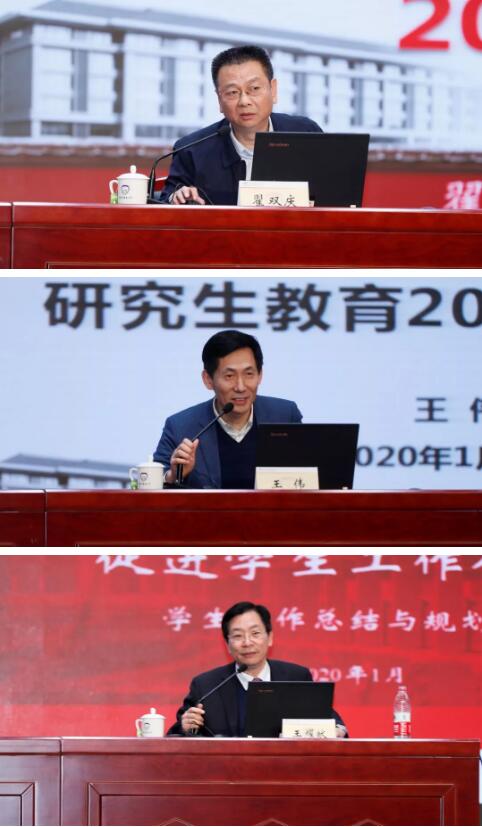 下午的專題報告環節由校黨委副書記靳琦主持。校黨委副書記、副校長翟雙慶以《本科教育2020行動計劃》為題作專題報告,提出學校進一步提升本科教育質量,加快建設一流本科的指導思想、基本原則和建設思路,并細化了具體行動方案。副校長王偉以《研究生教育2020行動計劃》為題作專題報告,分析了我校研究生教育現狀,提出了推進研究生培養質量整體提升的指導思想、基本原則行動思路,明確了各項重點任務。副校長王耀獻以《貫徹三全育人理念,促進學生工作創新》為題,總結了2019年學校三全育人成效亮點和特色經驗,分析研判了現存不足,提出了如何進一步完善三全育人各項工作機制和育人體系。