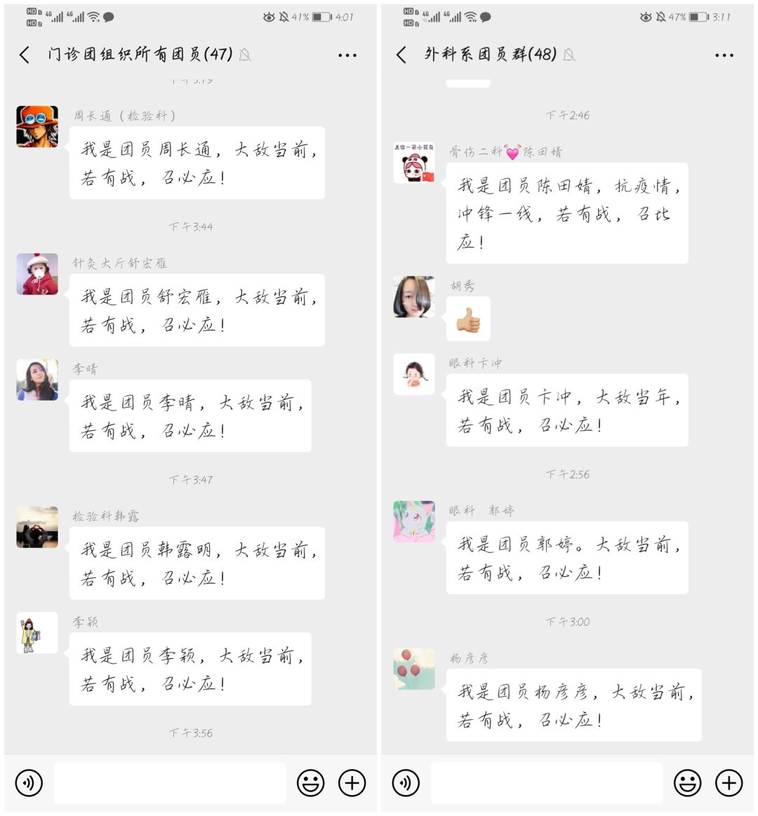 同時,在醫院還有這樣一群熱血青年,就是醫院的青年團員們。他們從疫情爆發后就積極響應醫院黨委號召,放棄休假回到工作崗位。院團委向全體團員正式發出倡議書,短短一天就有82名團員主動請戰。