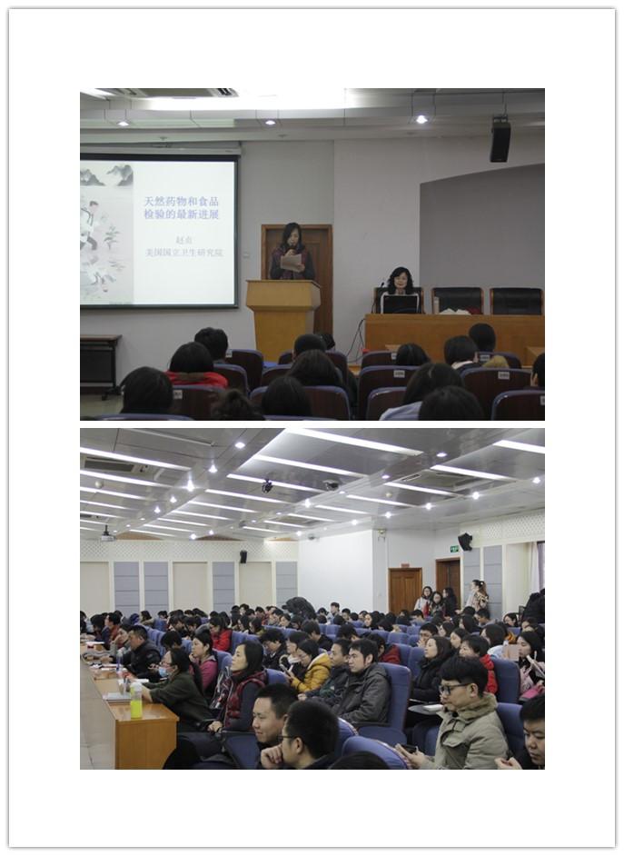 11月24日下午,研究生院成功舉辦2016-2017學年第七期“名師大講堂”系列講座。本場講座邀請美國國立衛生研究院 (NIH) 臨床中心的趙貞博士作了題為《天然藥物和食品檢驗的最新進展》的學術報告。研究生院副院長潘彥舒主持此次講座。