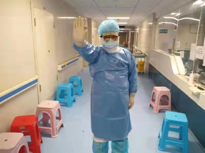 六個小時的連續工作,密封的隔離服從頭到腳包裹著身體,不一會兒,汗水就會浸濕衣服。當我走出病房區,脫下防護服時,腦海中還不斷閃現著病房內的患者、回響著同事們對我的叮囑。